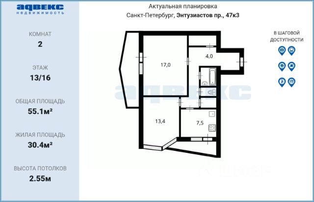 Продаётся 2-комн. квартира площадью 51,4 кв.м на 13 этаже 15 этажного дома (Корпус 1, Секция 1) проекта ПИК Янинский лес. Светлый просторный подъезд на уровне земли, функциональная планировка, большие окна, c отделкой. Жилой квартал "Янинский лес" возводится в районе Янино-1 Ленинградской области. Автобусная остановка находится в 3 минутах пешком. Проект расположен вплотную к восточной границе Санкт-Петербурга - в 4 минутах от КАД. До метро "Ладожская" - 23 минуты на общественном транспорте. До исторического центра города можно доехать за 25 минут на автомобиле. "Янинский лес" - масштабный проект из 32 жилых корпусов, где будет всё для комфортной жизни. Здесь предусмотрены надземные паркинги, откроются детские сады, школа и поликлиника. Кроме этого, появятся места, в которых можно проводить свободное время: ледовая арена и торговый центр площадью больше 3000 м². Жилой район строится по всем правилам ПИК-Стандарта: в зелёных дворах-парках появятся современные детские и спортивные площадки, пешеходный бульвар и другие места для отдыха. На первых этажах разместятся магазины, кафе и другие сервисы. Во дворах не будет автомобилей, а для гостей предусмотрены парковочные места. Проект окружают лесные массивы. В пешей доступности находится Ржевский лесопарк: летом там можно гулять и собирать грибы, а зимой кататься на лыжах. Также рядом расположен памятник природы Колтушские высоты - парк с обустроенными экотропами и веломаршрутом. А главное место притяжения местных жителей - озеро с обустроенным местом для пикников. Артикул 1048782 (Застройщик ООО "СПЕЦИАЛИЗИРОВАННЫЙ ЗАСТРОЙЩИК"ЭКСТРАГРАД") [cn_sbp_1832157]