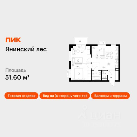 Продаётся 2-комн. квартира площадью 56,9 кв.м на 14 этаже 15 этажного дома (Корпус 4, Секция 1) проекта ПИК Янинский лес. Светлый просторный подъезд на уровне земли, функциональная планировка, большие окна, c отделкой. Жилой квартал "Янинский лес" возводится в районе Янино-1 Ленинградской области. Автобусная остановка находится в 3 минутах пешком. Проект расположен вплотную к восточной границе Санкт-Петербурга - в 4 минутах от КАД. До метро "Ладожская" - 23 минуты на общественном транспорте. До исторического центра города можно доехать за 25 минут на автомобиле. "Янинский лес" - масштабный проект из 32 жилых корпусов, где будет всё для комфортной жизни. Здесь предусмотрены надземные паркинги, откроются детские сады, школа и поликлиника. Кроме этого, появятся места, в которых можно проводить свободное время: ледовая арена и торговый центр площадью больше 3000 м². Жилой район строится по всем правилам ПИК-Стандарта: в зелёных дворах-парках появятся современные детские и спортивные площадки, пешеходный бульвар и другие места для отдыха. На первых этажах разместятся магазины, кафе и другие сервисы. Во дворах не будет автомобилей, а для гостей предусмотрены парковочные места. Проект окружают лесные массивы. В пешей доступности находится Ржевский лесопарк: летом там можно гулять и собирать грибы, а зимой кататься на лыжах. Также рядом расположен памятник природы Колтушские высоты - парк с обустроенными экотропами и веломаршрутом. А главное место притяжения местных жителей - озеро с обустроенным местом для пикников. Артикул 1049828 (Застройщик ООО "СПЕЦИАЛИЗИРОВАННЫЙ ЗАСТРОЙЩИК"ЭКСТРАГРАД") [cn_sbp_1844517]