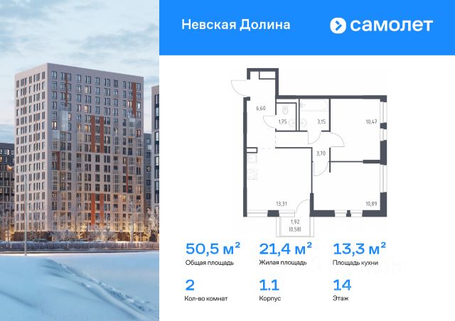 Продается уютная 2-комнатная квартира от застройщика в жилом комплексе "Город звезд" в новом городе на правом берегу Невы. До метро можно добраться на транспорте всего за 13 минут. Удобная, классическая, функциональная европланировка, большая кухня-гостиная 17 м², просторная прихожая 8.56 м². Общая площадь квартиры - 54.85 м², жилая 23.24 м², высота потолка 2.77 м. Квартира продается с отделкой "NORD LINE SILVER". Что особенного в ЖК "Город звезд"? • Инновационный Лицей Setl с оригинальной архитектурной концепцией и уникальной образовательной средой • Невский лесопарк под окнами - всегда свежий воздух и полноценный отдых на природе • Четыре тематические площади отдыха с разнообразным благоустройством • Аллея Звёзд - променад протяженностью 5 км с ландшафтным озеленением, зонами отдыха и велодорожкой • Выход на набережную реки Утки, где можно порыбачить или взять напрокат лодку • Единая входная группа с ресепшен и подземный паркинг