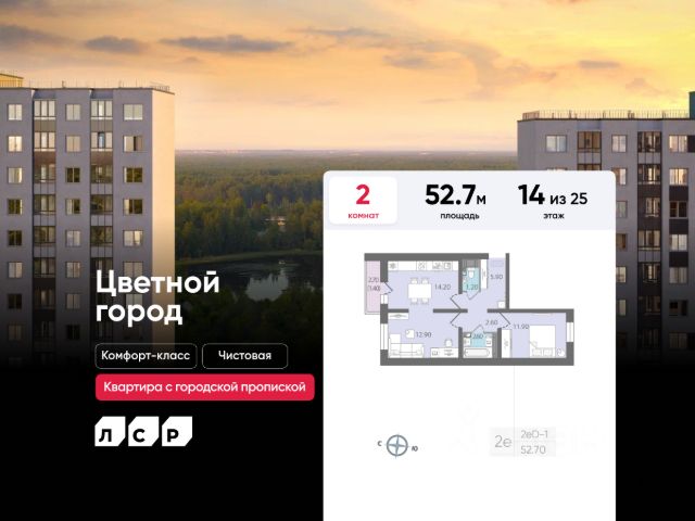 Продается 2-комнатная квартира в ЖК "Пейзажный квартал" на 14 этаже. Общая площадь составляет 50.50 кв. м. Квартира с чистовой отделкой. Жилой комплекс "Пейзажный квартал" располагается по адресу Санкт-Петербург, Красногвардейский Вдоль леса и рядом с рекой Охта. К 2026 году на берегах реки Охты будет создан Пейзажный парк с летними экотропами и зимними горками для тюбингов, скейт-парком и летним кинотеатром. Расположение: • 15 минут на авто до КАД; • 20 минут на авто до станций "Гражданский проспект" и "Академическая"; • 20 минут до ж/д станции "Ручьи"; Небольшой уютный квартал является частью масштабной застройки ЖК "Цветной город", и в то же время стоит обособленно от шумных массивов. Квартал граничит с новейшим объектом городской экосистемы - Пейзажным парком. Соседние кварталы уже застроены и заселены, поэтому здесь нет проблем с привычной городской инфраструктурой - работают детские сады и школы, открыты магазины и кафе, фитнес-клубы, студии красоты и пространства для творчества и отдыха. Преимущества: • Жизнь вблизи природы, но с городской пропиской; • Система "Умный дом" (в т.ч. управление домофоном со смартфона); • Сквозные парадные с колясочными помещениями; • Детский сад на 170 мест и школа на 300 учеников на территории ЖК; • Двор без машин. Успейте приобрести квартиру на выгодных условиях! Чтобы узнать подробности, обращайтесь за консультацией по телефону.