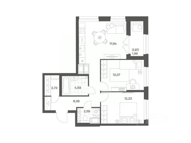 Продается квартира площадью 53.14 м² на 15 этаже 2 секции в Речной квартал от компании ГК "ТРЕСТ". Площадь кухни 15.66 м². Семейный жилой комплекс комфорт-класса "Речной квартал" от Группы компаний "ТРЕСТ" расположен в Невском районе Петербурга на пересечении Октябрьской набережной и Русановской улицы. Первая очередь квартала состоит из трёх корпусов, расположенных лучеобразно, чтобы максимально использовать естественное освещение и обеспечить видовые точки на локацию. Проект выделяется современными архитектурными решениями и дизайном. Концепция развития и благоустройства придомовой территории разделена на зоны отдыха, досуга и игровые площадки с учетом возраста и потребностей детей и взрослых. Квартал рассчитан на семейных покупателей, поэтому здесь нет студий: только одно-, двух- и трёхкомнатные квартиры. В проекте представлены квартиры с кухнями-гостиными, мастер-спальнями, гардеробными и кладовыми. "Речной квартал" - современный жилой комплекс с разнообразным благоустройством придомовой территории, просторными европланировками, закрытой охраняемой территорией и подземными паркингами. На территории комплекса уже функционирует детский сад на 110 мест. Также в квартале будет построена общеобразовательная школа на 475 мест с бассейном и стадионом. Открытие школы запланировано на 2029 год. Квартиры в ЖК "Речной квартал" можно приобрести с готовой отделкой от застройщика. Для покупателей квартир предусмотрено два варианта чистовой отделки "Ваниль" и "Шоколад". Чистовая отделка в квартирах ЖК "Речной квартал" предполагает монтаж натяжных потолков, укладку ламината, оклейку стен обоями под покраску, установку светильников и межкомнатных дверей. При отделке новой квартиры применяются качественные, натуральные и экологичные материалы, монтируется стильная импортная сантехника европейских брендов. В объявлении указана стоимость квартиры при 100% оплате. При других формах оплаты - базовую стоимость квартиры уточняейте на официальном сайте компании или у менеджера отдела продаж. Застройщик АО "Специализированный застройщик "Строительный трест".