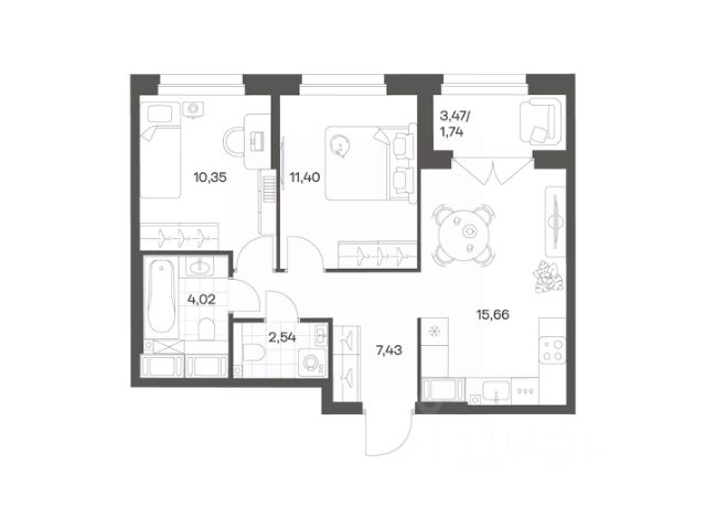 Продается квартира площадью 53.14 м² на 15 этаже 2 секции в Речной квартал от компании ГК "ТРЕСТ". Площадь кухни 15.66 м². Семейный жилой комплекс комфорт-класса "Речной квартал" от Группы компаний "ТРЕСТ" расположен в Невском районе Петербурга на пересечении Октябрьской набережной и Русановской улицы. Первая очередь квартала состоит из трёх корпусов, расположенных лучеобразно, чтобы максимально использовать естественное освещение и обеспечить видовые точки на локацию. Проект выделяется современными архитектурными решениями и дизайном. Концепция развития и благоустройства придомовой территории разделена на зоны отдыха, досуга и игровые площадки с учетом возраста и потребностей детей и взрослых. Квартал рассчитан на семейных покупателей, поэтому здесь нет студий: только одно-, двух- и трёхкомнатные квартиры. В проекте представлены квартиры с кухнями-гостиными, мастер-спальнями, гардеробными и кладовыми. "Речной квартал" - современный жилой комплекс с разнообразным благоустройством придомовой территории, просторными европланировками, закрытой охраняемой территорией и подземными паркингами. На территории комплекса уже функционирует детский сад на 110 мест. Также в квартале будет построена общеобразовательная школа на 475 мест с бассейном и стадионом. Открытие школы запланировано на 2029 год. Квартиры в ЖК "Речной квартал" можно приобрести с готовой отделкой от застройщика. Для покупателей квартир предусмотрено два варианта чистовой отделки "Ваниль" и "Шоколад". Чистовая отделка в квартирах ЖК "Речной квартал" предполагает монтаж натяжных потолков, укладку ламината, оклейку стен обоями под покраску, установку светильников и межкомнатных дверей. При отделке новой квартиры применяются качественные, натуральные и экологичные материалы, монтируется стильная импортная сантехника европейских брендов. В объявлении указана стоимость квартиры при 100% оплате. При других формах оплаты - базовую стоимость квартиры уточняейте на официальном сайте компании или у менеджера отдела продаж. Застройщик АО "Специализированный застройщик "Строительный трест".
