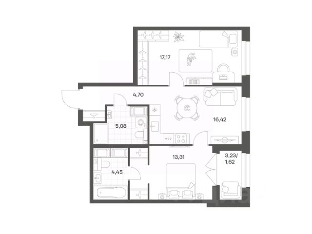 Продается квартира площадью 53.14 м² на 15 этаже 2 секции в Речной квартал от компании ГК "ТРЕСТ". Площадь кухни 15.66 м². Семейный жилой комплекс комфорт-класса "Речной квартал" от Группы компаний "ТРЕСТ" расположен в Невском районе Петербурга на пересечении Октябрьской набережной и Русановской улицы. Первая очередь квартала состоит из трёх корпусов, расположенных лучеобразно, чтобы максимально использовать естественное освещение и обеспечить видовые точки на локацию. Проект выделяется современными архитектурными решениями и дизайном. Концепция развития и благоустройства придомовой территории разделена на зоны отдыха, досуга и игровые площадки с учетом возраста и потребностей детей и взрослых. Квартал рассчитан на семейных покупателей, поэтому здесь нет студий: только одно-, двух- и трёхкомнатные квартиры. В проекте представлены квартиры с кухнями-гостиными, мастер-спальнями, гардеробными и кладовыми. "Речной квартал" - современный жилой комплекс с разнообразным благоустройством придомовой территории, просторными европланировками, закрытой охраняемой территорией и подземными паркингами. На территории комплекса уже функционирует детский сад на 110 мест. Также в квартале будет построена общеобразовательная школа на 475 мест с бассейном и стадионом. Открытие школы запланировано на 2029 год. Квартиры в ЖК "Речной квартал" можно приобрести с готовой отделкой от застройщика. Для покупателей квартир предусмотрено два варианта чистовой отделки "Ваниль" и "Шоколад". Чистовая отделка в квартирах ЖК "Речной квартал" предполагает монтаж натяжных потолков, укладку ламината, оклейку стен обоями под покраску, установку светильников и межкомнатных дверей. При отделке новой квартиры применяются качественные, натуральные и экологичные материалы, монтируется стильная импортная сантехника европейских брендов. В объявлении указана стоимость квартиры при 100% оплате. При других формах оплаты - базовую стоимость квартиры уточняейте на официальном сайте компании или у менеджера отдела продаж. Застройщик АО "Специализированный застройщик "Строительный трест".