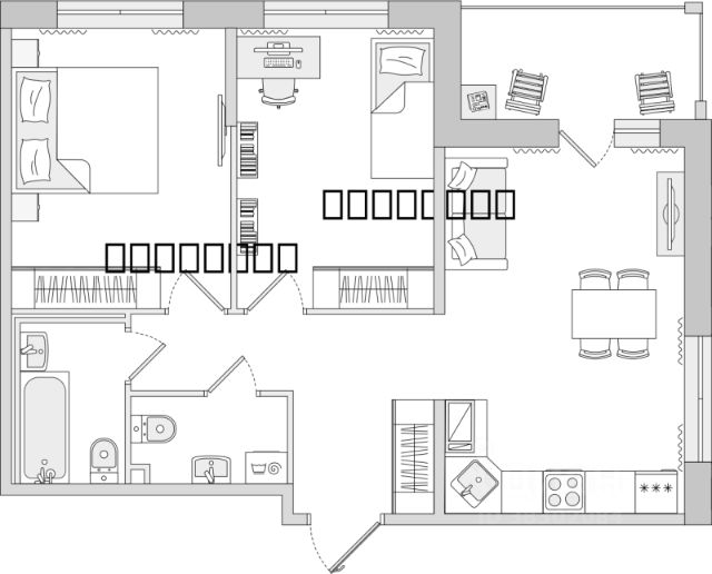 2. Спальня (13,6м2) с полноценной спальной зоной и зоной TV, большой гардеробной и выходом на лоджию (3.5м2), которую можно использовать как кабинет или зону отдыха. Установлен кондиционер.