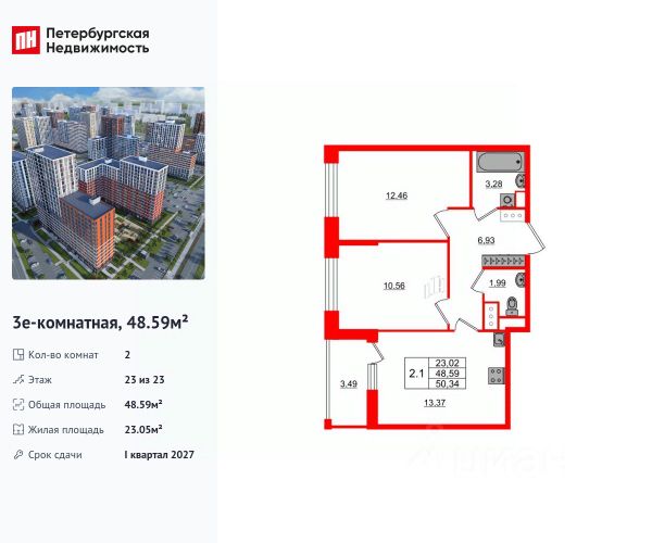 Дом уже сдан. Продажа осуществляется по договору переуступки прав требования, что гарантирует юридическую чистоту сделки.
