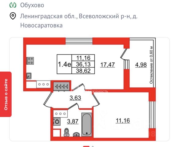 Квартира находится на 4 этаже.