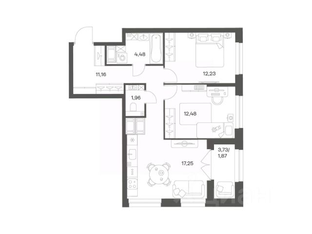Продается квартира площадью 53.9 м² на 16 этаже 3 секции в Речной квартал от компании ГК "ТРЕСТ". Площадь кухни 16.4 м². Семейный жилой комплекс комфорт-класса "Речной квартал" от Группы компаний "ТРЕСТ" расположен в Невском районе Петербурга на пересечении Октябрьской набережной и Русановской улицы. Первая очередь квартала состоит из трёх корпусов, расположенных лучеобразно, чтобы максимально использовать естественное освещение и обеспечить видовые точки на локацию. Проект выделяется современными архитектурными решениями и дизайном. Концепция развития и благоустройства придомовой территории разделена на зоны отдыха, досуга и игровые площадки с учетом возраста и потребностей детей и взрослых. Квартал рассчитан на семейных покупателей, поэтому здесь нет студий: только одно-, двух- и трёхкомнатные квартиры. В проекте представлены квартиры с кухнями-гостиными, мастер-спальнями, гардеробными и кладовыми. "Речной квартал" - современный жилой комплекс с разнообразным благоустройством придомовой территории, просторными европланировками, закрытой охраняемой территорией и подземными паркингами. На территории комплекса уже функционирует детский сад на 110 мест. Также в квартале будет построена общеобразовательная школа на 475 мест с бассейном и стадионом. Открытие школы запланировано на 2029 год. Квартиры в ЖК "Речной квартал" можно приобрести с готовой отделкой от застройщика. Для покупателей квартир предусмотрено два варианта чистовой отделки "Ваниль" и "Шоколад". Чистовая отделка в квартирах ЖК "Речной квартал" предполагает монтаж натяжных потолков, укладку ламината, оклейку стен обоями под покраску, установку светильников и межкомнатных дверей. При отделке новой квартиры применяются качественные, натуральные и экологичные материалы, монтируется стильная импортная сантехника европейских брендов. Застройщик АО "Специализированный застройщик "Строительный трест".