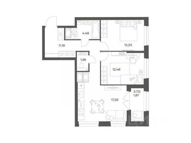 Продается квартира площадью 53.9 м² на 16 этаже 3 секции в Речной квартал от компании ГК "ТРЕСТ". Площадь кухни 16.4 м². Семейный жилой комплекс комфорт-класса "Речной квартал" от Группы компаний "ТРЕСТ" расположен в Невском районе Петербурга на пересечении Октябрьской набережной и Русановской улицы. Первая очередь квартала состоит из трёх корпусов, расположенных лучеобразно, чтобы максимально использовать естественное освещение и обеспечить видовые точки на локацию. Проект выделяется современными архитектурными решениями и дизайном. Концепция развития и благоустройства придомовой территории разделена на зоны отдыха, досуга и игровые площадки с учетом возраста и потребностей детей и взрослых. Квартал рассчитан на семейных покупателей, поэтому здесь нет студий: только одно-, двух- и трёхкомнатные квартиры. В проекте представлены квартиры с кухнями-гостиными, мастер-спальнями, гардеробными и кладовыми. "Речной квартал" - современный жилой комплекс с разнообразным благоустройством придомовой территории, просторными европланировками, закрытой охраняемой территорией и подземными паркингами. На территории комплекса уже функционирует детский сад на 110 мест. Также в квартале будет построена общеобразовательная школа на 475 мест с бассейном и стадионом. Открытие школы запланировано на 2029 год. Квартиры в ЖК "Речной квартал" можно приобрести с готовой отделкой от застройщика. Для покупателей квартир предусмотрено два варианта чистовой отделки "Ваниль" и "Шоколад". Чистовая отделка в квартирах ЖК "Речной квартал" предполагает монтаж натяжных потолков, укладку ламината, оклейку стен обоями под покраску, установку светильников и межкомнатных дверей. При отделке новой квартиры применяются качественные, натуральные и экологичные материалы, монтируется стильная импортная сантехника европейских брендов. В объявлении указана стоимость квартиры при 100% оплате. При других формах оплаты - базовую стоимость квартиры уточняейте на официальном сайте компании или у менеджера отдела продаж. Застройщик АО "Специализированный застройщик "Строительный трест".
