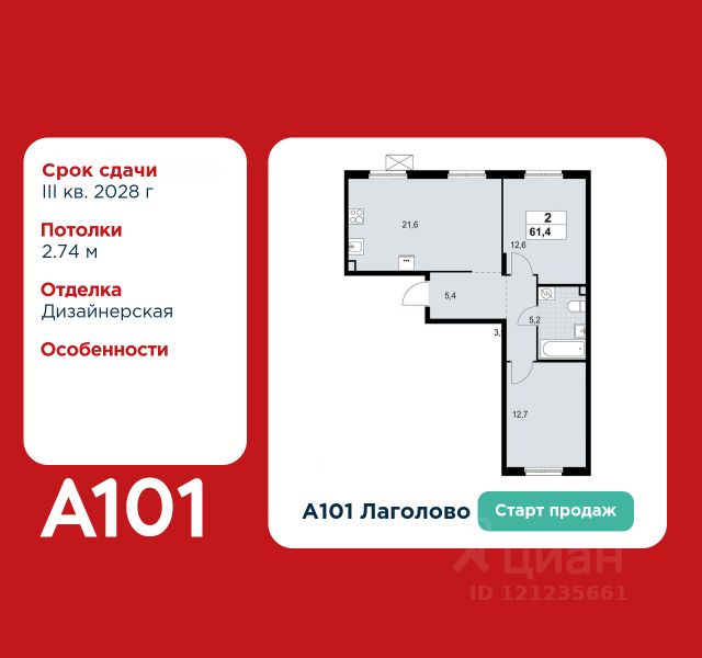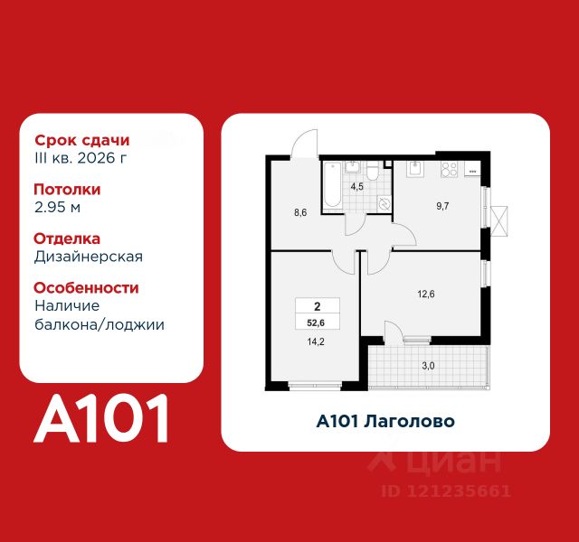 2-комнатная квартира площадью 59.50 в ЖК "А101 Лаголово" c лоджией на 2 этаже. Квартира с отделкой. Вид из окна во двор. В квартире 2 санузла. Высота потолков 2.8 м. Предложения от застройщика на декабрь 2025: - Гибкая рассрочка 20 000 руб/мес. и первым взносом 10%. ОТДЕЛКА Для квартир с чистовой отделкой предлагается три варианта дизайна: Классика, Карелия светлая и Карелия темная. Варианты всех дизайнерских решений представлены на фотографиях. Подробности можно уточнить у менеджера. На все отделочные работы от застройщика предоставляется гарантия. ОСОБЕННОСТИ ПЛАНИРОВКИ Глубокая лоджия от 1,4м позволяет организовать отдельный кабинет, мастерскую или зимний сад с лаундж-зоной. ПАРАДНАЯ В каждой парадной предусмотрены места для хранения велосипедов и колясок, гостевой санузел, лапамойка (место для мытья домашних животных или колес велосипедов) и удобная зона ожидания для гостей. ДВОРЫ И ОКРУЖЕНИЕ Просторные дворы свободны от машин и закрыты от посторонних. Большую часть комплекса займут благоустроенные зелёные зоны, теневые сады и городские общественные пространства с развитой тротуарной сетью и велодорожками. Каждый дом оборудован системами видеонаблюдения и контроля доступа. "А101 Лаголово" - современный город у подножия знаменитых Дудерговских высот, в объятиях чистейших озёр и зелёных живописных массивов, наполненный всем необходимым для счастливой жизни. ИНФРАСТРУКТУРА. Мы занимаемся комплексным освоением территории. Наш приоритет - доступность всех сервисов для счастливой жизни. 1. Лаголово-город 15-ти минутной доступности. Вся необходимая инфраструктура: магазины, салоны красоты, образовательные учреждения, медицинские центры находятся в 15-ти минутах пешей прогулки от любой точки жилого комплекса. Это позволяет не тратить время на долгие перемещения. 2. Представьте идеальный город, где ребенок может спокойно играть, а пожилой человек наслаждаться заслуженным отдыхом. Жилая среда нашего комплекса может комфортно использоваться как 8-летним ребенком, так и 80-летним пожилым человеком. Дома, улицы, общественные пространства, тротуары спроектированы с заботой о людях разных возрастов. 3. Мы активно развиваем авторскую образовательную экосистему "Лёрнити". Она включает строительство 8 современных детских садов (2000 мест) и 3 школ (2945 учащихся). Мы учим родителей гармонично общаться с детьми, помогаем малышам подготовиться к школе, а подросткам - выбрать будущую профессию и развить таланты. Не хватает средств на покупку кладового помещения? Оформите ипотеку на квартиру и добавьте к ней часть стоимости кладовой. ЗАСТРОЙЩИК ГК "А101" - крупный инвестиционно-строительный холдинг, занимает 6-е место по объему строительства в России (по данным "Единого ресурса застройщиков" на 2023 год). НКР присвоило ГК "А101" кредитный рейтинг A+.ru, подтверждая его надежность и финансовую устойчивость для завершения строительства ЖК.