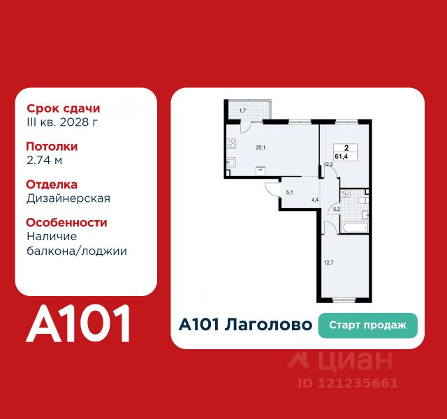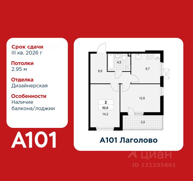 Старт продаж! 2-комнатная квартира площадью 46.73 в ЖК "А101 Лаголово" на 2 этаже. Квартира без отделки. Вид из окна во двор. В квартире 1 санузел. Высота потолков 2.74 м. Предложения от застройщика на ноябрь 2025: - Гибкая рассрочка 20 000 руб/мес. и первым взносом 10%. ОТДЕЛКА Квартира передается без отделки. Благодаря тому, что в данном типе отделки стены не возводятся, вы сможете создать удобную планировку и самостоятельно организовать зонирование комнат. ОСОБЕННОСТИ ПЛАНИРОВКИ Из окон квартиры открывается живописный вид на зелёный пешеходный бульвар, который строится одновременно с домами. ПАРАДНАЯ. В каждой парадной предусмотрены места для хранения велосипедов и колясок, гостевой санузел и удобная зона ожидания для гостей. ДВОРЫ И ОКРУЖЕНИЕ. Просторные дворы безопасны для детей, так как свободны от машин, закрыты от посторонних и постоянно находятся под видеонаблюдением. Во дворах создается разнообразная среда для детей всех возрастов: детские площадки с батутами, тактильными дорожками и игровыми комплексами. Для активного отдыха - воркаут-площадки, столы для пинг-понга и газоны для занятий йогой. Во дворах есть и тихие уголки - зеленые гостиные с уличной мебелью, где можно поработать на свежем воздухе или отдохнуть в тишине. Из внутренних дворов комплекса можно выйти на пешеходный бульвар длиной около 900 метров. Здесь будет организовано полноценное общественное пространство с амфитеатром, уличным кафе, ручьем, фонтаном и множеством мест для отдыха и игр. Большую часть бульвара займут благоустроенные зеленые зоны и теневые сады из десятков видов деревьев и кустарников, многолетних цветов и трав, которые будут радовать глаз круглый год. "А101 Лаголово" - современный город у подножия знаменитых Дудерговских высот, в объятиях чистейших озер и зеленых живописных массивов, наполненный всем необходимым для счастливой жизни. ИНФРАСТРУКТУРА. Мы занимаемся комплексным освоением территории. Наш приоритет - доступность всех сервисов для счастливой жизни. 1. Лаголово-город 15-ти минутной доступности. Вся необходимая инфраструктура: магазины, салоны красоты, образовательные учреждения, медицинские центры находятся в 15-ти минутах пешей прогулки от любой точки жилого комплекса. Это позволяет не тратить время на долгие перемещения. 2. Представьте идеальный город, где ребенок может спокойно играть, а пожилой человек наслаждаться заслуженным отдыхом. Жилая среда нашего комплекса может комфортно использоваться как 8-летним ребенком, так и 80-летним пожилым человеком. Дома, улицы, общественные пространства, тротуары спроектированы с заботой о людях разных возрастов. 3. Мы активно развиваем авторскую образовательную экосистему "Лёрнити". Она включает строительство 8 современных детских садов (2000 мест) и 3 школ (2945 учащихся). Мы учим родителей гармонично общаться с детьми, помогаем малышам подготовиться к школе, а подросткам - выбрать будущую профессию и развить таланты. Не хватает средств на покупку кладового помещения? Оформите ипотеку на к