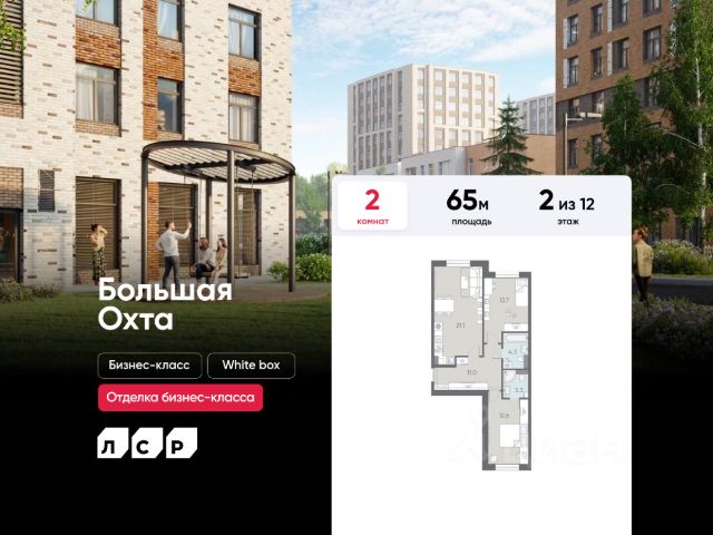Продаётся 2-комнатная квартира в ЖК "Большая Охта" на 2 этаже. Общая площадь составляет 55.00 кв. м. Квартира с white box отделкой. Жилой комплекс "Большая Охта" располагается по адресу Санкт-Петербург, Красногвардейский. "ЛСР. Большая Охта" - проект бизнес-класса, в Красногвардейском районе между Якорной и Партизанской улицами, рядом с центром Петербурга. Престижный комплекс с удобной пешеходной и транспортной доступностью. Особенности квартиры высокие потолки и увеличенные окна. Горизонтальная разводка труб водоснабжения и отопления и вынесенные в холлы счетчики сохранят эстетичный дизайн комнат. Встроенные клапаны инфильтрации воздуха будут поддерживать чистоту и свежесть воздуха. Расположение: • 8 мин на авто до станции метро "Новочеркасская"; • 10 мин на авто до станции метро "Ладожская"; • 10 мин на авто до Таврического сада и исторического центра города; • 13 мин на авто до станции метро "Чернышевская"; • 25 мин на авто до КАД. Пространство внутри комплекса разделено на функциональные зоны: тематические, спортивные, уединенные. Все площадки окружают взрослые хвойные и лиственные деревья, подобранные с учетом роста, эстетики и сезонного цветения. Расширенная инфраструктура комплекса продумана до мелочей. Внутри квартала есть все необходимое для жизни с комфортом и удовольствием - детские сады и школы, магазины, площадки для спорта и отдыха, фитнес-залы, модные кофейни и общественные летние веранды. Преимущества: • Подземный паркинг и кладовые помещения; • Двор без машин; • Система "Умный дом" (в т.ч. управление домофоном со смартфона); • Пост охраны и консьерж; • Индивидуальный тепловой пункт; • Колясочные в каждой парадной; • Зарядка для электромобилей. Успейте приобрести квартиру на выгодных условиях! Чтобы узнать подробности, обращайтесь за консультацией по телефону.