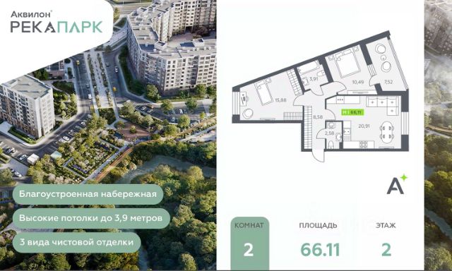 В центре Петербурга на берегу реки Охты представлена 2-х комнатная квартира на 2 этаже общей площадью 54.64 кв.м. Дом бизнес-класса в креативном центре Петербурга на берегу реки Охты и 25 минутах пешком до Невского проспекта и 17 минутах пешком до м. Новочеркасская. Неповторимая и цельная атмосфера места. Река, которая обнимает дома, дышащие фасады из натуральных материалов, парк с родниками и травами во дворе и уникальная пластичная архитектура созвучны характеру современного города. АЛЬПЕН - дом твоего равновесия. - Приватные корпуса; - Выразительные фасадные решения; - Декоративная подсветка фасада; - Панорамные террасы с видом на реку Охта; - Квартиры с верандами формата high flat; - Витринное остекление. Внутренний двор, набережная и прилегающие территории образуют цельную эко среду, идеальную для комфортной, насыщенной новыми впечатлениями и эмоциями, динамичной жизни. Авторский двор-парк, переходящий в набережную - живописное природное окружение с тропами, променадом и увлекательными маршрутами для путешествий. Холлы и общественные пространства - продолжение парка. Авторское прочтение общественного пространства от московского дизайн бюро STUDIO 211 с первых минут позволяет ощутить ценность равновесия. АЛЬПЕН - для тех, кто ценит близость центра, уединенность и природную энергетику. - Семейная ипотека 4,3% на весь период кредитования. Ипотека предоставляется Сбербанком. Сумма кредита до 12 млн рублей, первый взнос от 20,1%. - Рассрочка на 2/6/12 месяцев.
