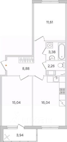 Просторная кухня-гостиная , отдельная комната с 2-мя окнами, мастер-спальня с санузлом и гардеробной.