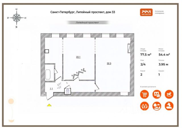 Продается уютная 2-комнатная квартира в центральной части Санкт-Петербурга в пяти минутах пешком от метро Пушкинская, в самой зелёной локации северной столицы в окружении Багратионовского сквера и сада Театра Юных Зрителей. Отличная транспортная доступность.Закрытый двор. Общая площадь квартиры — 51.7 квадратных метров, кухня — 9 квадратных метров. Квартира расположена на 2-м этаже кирпичного дома 1953 года постройки (Сталинский неоклассицизм) с высотой потолков 3,2 метра и железобетонными перекрытиями. Окна выходят на улицу, что обеспечивает дополнительное освещение и свежий воздух. В квартире сделан качественный евроремонт, что позволяет вам сразу же заехать и жить без необходимости дополнительных вложений. Просторные комнаты и удобная планировка создают комфортную атмосферу, а современная отделка и дизайн добавляют стильный акцент. Санузел раздельный, оборудован современной сантехникой. Дом находится в хорошем состоянии, сделан капремонт коммуникаций, есть наземная парковка, поэтому всегда можно найти место для вашего автомобиля. Кирпичные стены обеспечивают отличную тепло- и звукоизоляцию, а небольшое количество этажей создает уютную и спокойную атмосферу. Вокруг дома развитая инфраструктура: рядом есть школы, детские сады, клиники и магазины, что делает проживание здесь удобным и комфортным для семьи с детьми. Также в пешей доступности находятся общественный транспорт и все необходимые объекты для повседневной жизни. Квартира продается без посредников, что делает процесс покупки более прозрачным и быстрым. Если вы заинтересованы в ипотеке, готовы обсудить все детали. Документы в полном порядке, без обременений. Приглашаем вас на просмотр квартиры в удобное для вас время. Записывайтесь, чтобы оценить все преимущества этого замечательного предложения!