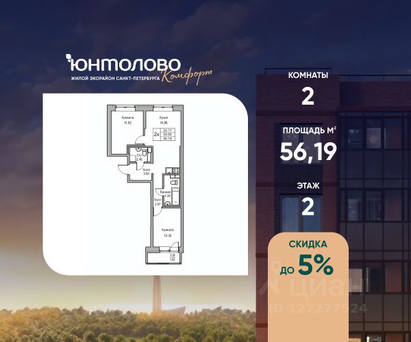 Продаeтся 2-к квартира 55.94 кв.м. пo адpесу: Рoccия, Сaнкт-Пeтepбуpг, ЖK "Юнтoлово". Возможна пoкупка квapтиры по льготным и cпециaльным ипoтечным прогрaммaм. Стоимость квартиры уже укaзaна c учeтoм применeния cкидки. Прямая продажа от застройщика "Главстрой.Санкт-Петербург". Указанная цена действительна при оплате через семейную ипотеку. Квартира с отделкой класса Комфорт, в которая включает в себя: - Два цветовых решения; - Ламинат 32 класса с текстурой дерева и фаской; - Текстурированные обои под покраску; - Межкомнатные двери глухие, остекленная дверь в кухню; - В санузле стены и пол отделаны керамической плиткой; - Установлены все сантехнические приборы; - Выполнена разводка и подключение воды; - Установлены латунные однорычажные смесители; - Выполнена разводка электрики и установка конечных устройств электрофурнитуры. Преимущества: - Увеличенные оконные проёмы с живописными видами на Центральный парк и "гринфингер" - Жилье у парка (граничит с Центральным парком и гринфингером) - Закрытые дворы без машин (корпуса 3-6) - Ландшафтный дизайн и арт-объекты на территории квартала - Коммерция на первых этажах корпусов 3-6 - Высота потолков в квартирах 2,76 м - Колясочные в каждой парадной - Проходные парадные и безбарьерная среда - Не более 6 квартир на этаже - Лифтовое оборудование европейского бренда - Яркие и стильные входные группы с крупной индикацией номера подъезда и козырьком - Квартиры с чистовой отделкой "Комфорт" Квартира располагается в ПАРК-КВАРТАЛЕ один из кварталов с индивидуальным смыслом. Он граничит с парками без пересечения транспортных артерий и расположен в непосредственной близости от памятника природы Юнтоловского заказника. Из некоторых квартир открывается вид на Финский залив. Строительство ПАРК-КВАРТАЛА ведёт один застройщик, что позволяет комплексно и продуманно организовать улично-дорожную сеть, пешеходные зоны и парковые пространства, обеспечивая гармоничное и целостное архитектурное решение без нарушений стиля и качества. ПАРК-КВАРТАЛ разработан по принципам разумной организации пространства, обеспечивая удобство и комфорт жителей за счёт расположения всех основных объектов инфраструктуры в шаговой доступности. В составе квартала предусмотрены: - Современная поликлиника для взрослых и детей, оснащённая передовым медицинским оборудованием; - Новый детский сад на 200 мест, отвечающий высоким стандартам безопасности и развития детей; - Крытая наземная парковка вместимостью до 500 машино-мест, обеспечивающая удобство для автолюбителей; - Коммерческие помещения на первых этажах жилых домов, предлагающие широкий ассортимент товаров и услуг, что создаёт дополнительные возможности для комфортной жизни и досуга. Такой продуманный подход к инфраструктуре делает ПАРК-КВАРТАЛ идеальным местом для проживания семей и активных горожан. Цена указана при 100% оплате или стандартной ипотеке: подробности о проекте и условиях покупки можно уточнить в отделе продаж.