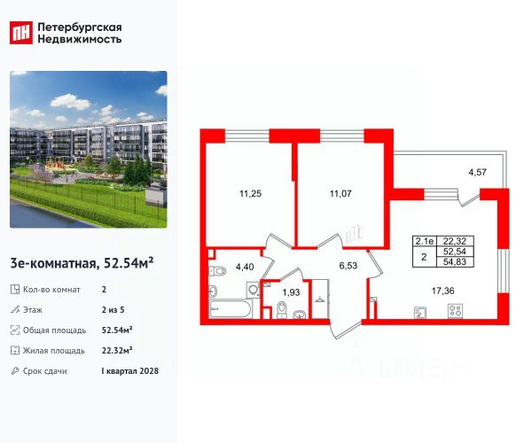 Продается уютная 2-комнатная квартира от застройщика в жилом комплексе "Парадный ансамбль" в престижном Московском районе. До метро можно добраться на транспорте всего за 20 минут. Удобная, классическая, функциональная европланировка, большая кухня-гостиная 17.3 м², вместительная прихожая 6.09 м². Общая площадь квартиры - 51.15 м², жилая 22.19 м², высота потолка 2.77 м. Квартира продается с отделкой "Норд Лайн серый". Что особенного в ЖК "Парадный ансамбль"? • Инновационный Лицей Setl с оригинальной архитектурной концепцией и уникальной образовательной средой • Масштабное малоэтажное строительство в престижном Московском районе • Рекреационные зоны: парадный парк в центре квартала, ручей с собственной набережной, центральная площадь, ресторанный комплекс и пешеходный бульвар • Фасады из керамогранита и кирпича с яркими и акцентными входными группами • Две самые большие площадки Setl Kids и Setl Sport • Уникальные квартиры.High Flat на последних этажах, палисадники у квартир на первом этаже, семейные секции, квартиры с саунами и окном в ванной