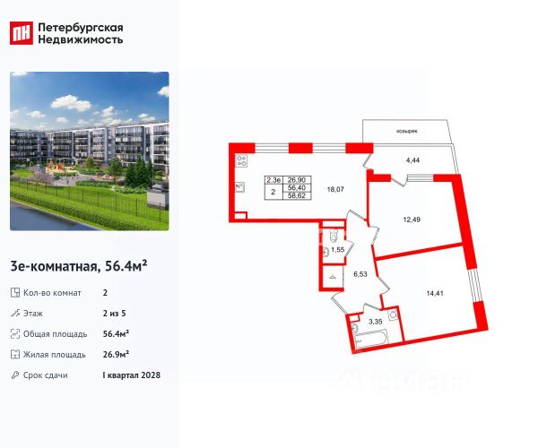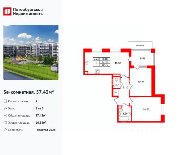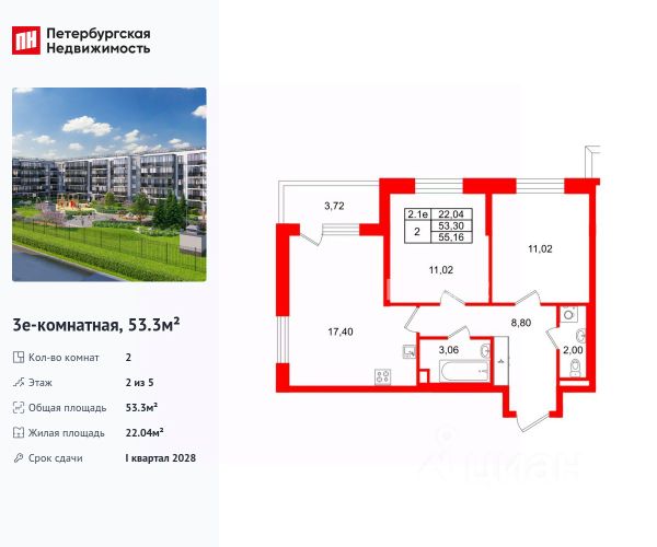 Продается уютная 2-комнатная квартира от застройщика в жилом комплексе "Парадный ансамбль" в престижном Московском районе. До метро можно добраться на транспорте всего за 20 минут. Удобная, классическая, функциональная европланировка, большая кухня-гостиная 17.3 м², вместительная прихожая 6.09 м². Общая площадь квартиры - 51.15 м², жилая 22.19 м², высота потолка 2.77 м. Квартира продается с отделкой "Норд Лайн серый". Что особенного в ЖК "Парадный ансамбль"? • Уникальные квартиры. Хай Флет (High Flat) на последних этажах, палисадники у квартир на первом этаже, семейные секции, квартиры с саунами и окном в ванной • Масштабное малоэтажное строительство в престижном Московском районе • Рекреационные зоны: парадный парк в центре квартала, ручей с собственной набережной, центральная площадь, ресторанный комплекс и пешеходный бульвар • Фасады из керамогранита и кирпича с яркими и акцентными входными группами • Две самые большие площадки Setl Kids и Setl Sport • Инновационный Лицей Setl с оригинальной архитектурной концепцией и уникальной образовательной средой