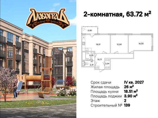 Продажа 2-комнатных квартир на 2 этаже в поселке Стрельна в Санкт-Петербурге