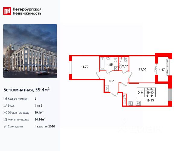Жилая площадь состоит из двух изолированных комнат 21,3+15,9 квадратных метров, позволяющая свободно разместить мебель и создать удобное пространство для жизни. Кухня площадью 13.6 квадратных метров предоставит достаточно места для кулинарного творчества и семейных ужинов, а просторный холл 9,1кв.м. позволит разместить большой шкаф-купе.