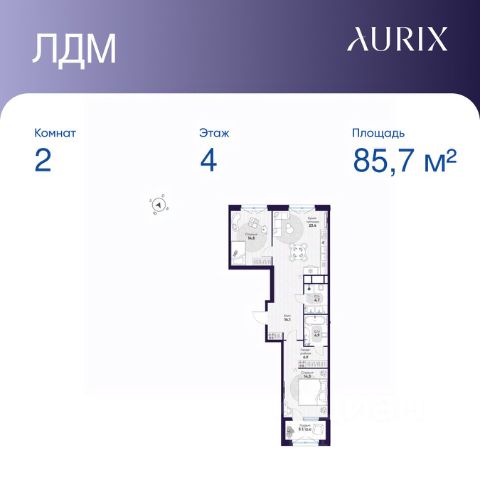 Продается 2-к квартира без отделки в ЖК "ЛДМ". Общая площадь квартиры — 85.7 кв. м, этаж 4 из 9. Тип дома — монолитный. Цена указана при 100% оплате.