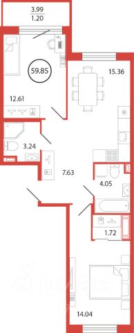Общая площадь 56,2 кв.м. на 4 этаже 6-этажного кирпично-монолитного дома (2011 г.п.). В доме имеется грузовой лифт.