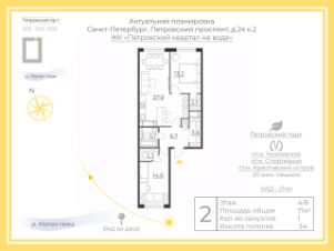 В историческом центре с особой атмосферой Петроградской стороны представлена 2-х комнатная квартира на 4 этаже общей площадью 72.40 кв.м. В корпусе KLASSIC представлены уникальные квартиры для ценителей формата премиум. Пространство вокруг дома вариативно и открывает возможности для отдыха всей семьей на природе. В корпусе расположена зеленая гостиная — полуприватная зона на 2-4 человека с деревянными креслами и диваном, а также детская площадка, интегрированная в сосны. Мультиформатный AVANT соединил вайб Петроградской стороны, индустриальный колорит и уникальную историю локации, органическую архитектуру и множество форматов жилой, коммерческой, сервисной, развлекательной и социальной инфраструктуры, сократив высоту и объем застройки в пользу природных зон, променадов и частного парка. Элитный жилой комплекс располагается в окружении самых престижных заведений и ключевых транспортных артерий Петербурга. AVANT придется по душе тому, кто имеет внутреннюю силу и свободу от стереотипов. Главным общественным пространством и инфраструктурной артерией квартала станет пешеходный променад протяженностью 200 метров для отдыха в привычном для каждого формате. Здесь кафе, рестораны и бутики, фитнес-центр и детские площадки чередуются с уединенными зонами отдыха, окруженными зеленью. Уникальные форматы жилья созданы на основе конструктивных особенностей исторического здания фабрики. Особенности классического лофта задают вариативность форматов: - Индустриальный шик с толщиной стен до 1 метра; - Панорамные окна; - Многоуровневые пространства; - Воздушные антресольные этажи. Такого в Петербурге еще нет. В новом проекте ААG на Пионерской новые смыслы, новые возможности, смелые решения. AVANТ вaша вcеленная Livе Wоrk Рlay Lеarn для жизни, отдыха и paбoты. - Семейная ипотека 4,3% на весь период кредитования - Траншевая ипотека с платежом 2013 рублей в месяц до ввода в эксплуатацию - Программы рассрочки 0% без удорожания стоимости квартиры - Отделка WHITE BOX в подарок