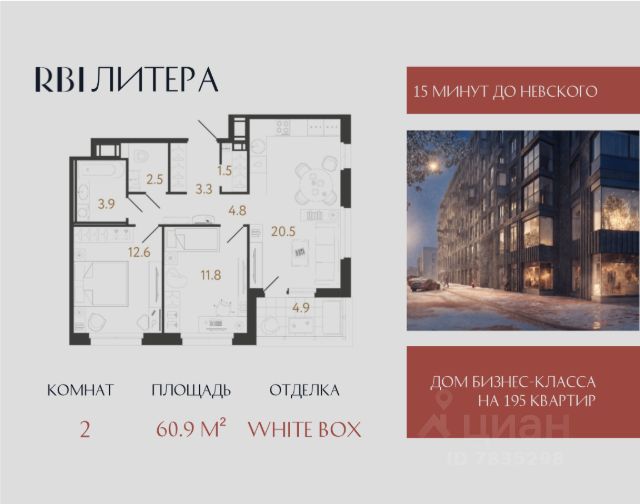 Клубный дом "Литера" от RBI. Новая "Литера" вашей жизни Камерный проект бизнес-класса на 195 квартир строится в 6 минутах от метро "Елизаровская" в непосредственной близости от исторического и делового центра Петербурга. Дом располагается в 700 м от набережной Невы по Большому Смоленскому проспекту: встречать рассветы и провожать закаты, наслаждаясь захватывающей панорамой города и зелёным окружением Невского района, можно из окон собственной квартиры! До Московского вокзала и центральной части Невского проспекта — 15 минут с учётом пешей прогулки до "Елизаровской" от дома. Добраться на автомобиле можно за то же время. До аэропорта "Пулково" 23 км. Дом состоит из двух 12-этажных секций, которые располагаются друг напротив друга, и ещё двух 8-этажных. Вместе секции образуют букву "Л" — форма дома отсылает к его названию. Планировки — от студий до просторных евро-четырёхкомнатных. Площадь квартир — от 24 до 121 м², высота потолков на типовых этажах — 2,8 м. На верхних этажах располагаются квартиры с террасами. Для романтиков — квартиры с эркерами. Для ценителей функциональных планировок — квартиры с выделенной рабочей зоной кухни и большой гостиной-столовой, планировки с мастер-спальнями и гардеробными. Ритмичную архитектуру в стиле лофт дополняют характерные "литеры" эркеров. Основной объём внешних фасадов из красного кирпича обеспечивается за счёт фламандской 3D-кладки и декоративных рустов. Со двора фасады выполнены в светлых тонах — чтобы усилить ощущение простора и безопасности. Единая дизайн-концепция продолжается в лобби дома. Сочетание тёплого кирпича с холодным металлом и стеклом создаёт харизматичное, брутальное настроение интерьера парадной группы. Чёткость вертикальных объёмов смягчается округлыми формами стойки ресепшн и декоративных куртин, а большие витражные окна создают иллюзию бесконечности пространства. Придать мыслям стройную форму можно будет в специально оборудованной зоне коворкинга только для жителей. Здесь же в лобби со свободным Wi-Fi появится зона ожидания для гостей и уникальный арт-объект от Владимира Абиха. Диптих из объёмных оттисков друг друга при наложении образует единое целое и запечатывает в себе фразу "Между нами". Эта инсталляция — метафора общности между нами, воплощение в искусстве объективной истины о том, что хотя вокруг много людей, лишь с немногими ощущаешь неподдельную связь и самого себя кем-то цельным. Вход на приватную территорию — по электронному ключу бесконтактного доступа. Во дворе высадят взрослые деревья и цветущие растения, оборудуют зону для занятий спортом, места отдыха для взрослых и экологичную детскую площадку с развивающими элементами для малышей и подростков. Двор без машин — можно отпускать детей на прогулки и не переживать за их безопасность. Для жителей оборудуют тёплый подземный паркинг, велопарковки и колясочные. На охраняемой территории у дома появится гостевая стоянка. Дом "Литера". Для авторов своей жизни