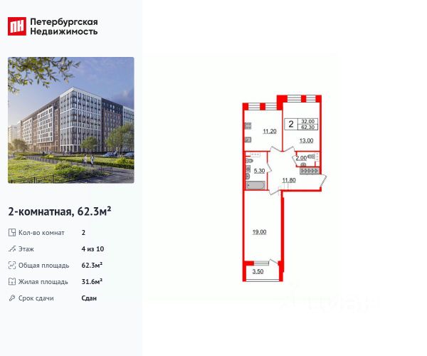 • ✓ В базе Циан 49 2-комнатных квартир на 4 этаже рядом с метро Политехническая