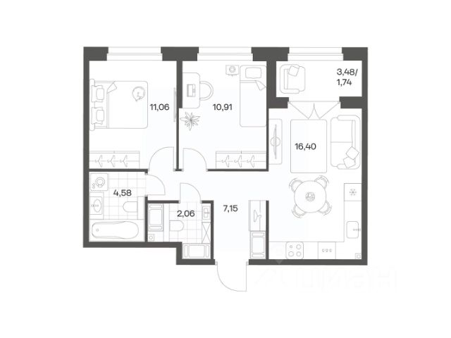 Продается уютная 2-комнатная квартира от застройщика в жилом комплексе "Город звезд" в новом городе на правом берегу Невы. До метро можно добраться на транспорте всего за 13 минут. Мастер-спальня с собственной ванной комнатой. Самое приватное пространство в вашей квартире. Уникальная, функциональная европланировка, большая кухня-гостиная 17.31 м², вместительная прихожая 7 м². Общая площадь квартиры - 55.16 м², жилая 23.85 м², высота потолка 2.77 м. Квартира продается с отделкой "Норд Лайн серый". Что особенного в ЖК "Город звезд"? • Инновационный Лицей Setl с оригинальной архитектурной концепцией и уникальной образовательной средой • Невский лесопарк под окнами - всегда свежий воздух и полноценный отдых на природе • Четыре тематические площади отдыха с разнообразным благоустройством • Аллея Звёзд - променад протяженностью 5 км с ландшафтным озеленением, зонами отдыха и велодорожкой • Выход на набережную реки Утки, где можно порыбачить или взять напрокат лодку • Единая входная группа с ресепшен и подземный паркинг