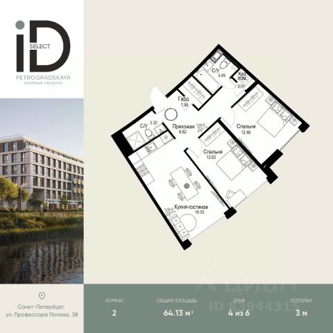 2-комн. квартира в ЖК "Северная корона" на 4 этаже. Квартира без отделки, полностью готова к чистовой отделке и дальнейшему ремонту. Общая площадь: 93.5 кв.м., жилая: 36.09 кв.м., площадь просторной кухни-столовой: 20.3 кв.м. Квартира - распашонка, без проходных комнат, окна выходят на paзные стороны дома. В квартире один балкон, два совмещенных санузла. Высота потолков 3.0 м.