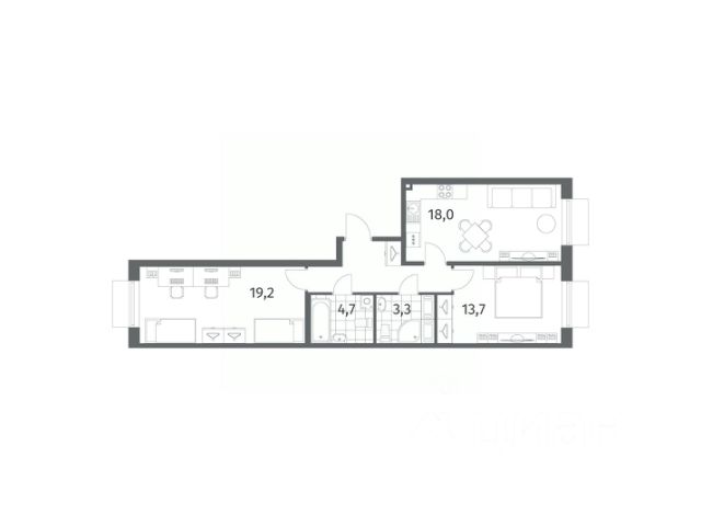 2-комн. квартира от застройщика с предчистовой отделкой в ЖК "LEGENDA Васильевского" на 4 этаже. Общая площадь: 76.14 кв.м., жилая: 25.41 кв.м., площадь просторной кухни-столовой: 27.22 кв.м. Комнаты изолированные, все окна выходят на одну сторону. В квартире два совмещенных санузла. Высота потолков 2.7 м. "LEGENDA Васильевского" жилой квартал в минутной доступности от Финского залива, главного креативного хаба Санкт-Петербурга Севкабель Порта и других точек притяжения. Современные инженерные и технические решения, повышающие качество жизни TechnoBox включают в себя: стационарный и удаленный контроль дома, систему вентиляции Air Design - здоровое дыхание без лишнего шума, мультисервисную сеть, объединяющую коммуникационные системы, удаленное управление электроприборами, контроль отопления в каждом помещении, поддерживающий оптимальный температурный баланс во время "холодного" периода", датчики протечки, датчик открытия входной двери. Мультисервисная сеть (МСС) объединяет ключевые слаботочные системы дома, задавая им единый высокий стандарт работы, обеспечивая надёжность их функционирования и управления. Квартира готова к декорированию. Застройщиком сделана шумоизоляция; стены подготовлены для отделки; проведена электрика с учетом рекомендаций по расстановке мебели и бытовой техники; выровнен пол. В каждой квартире установлена взломостойкая входная дверь, окна со специальным термоизолированным алюминиевым профилем. Двор жилого комплекса "LEGENDA Васильевского" закрыт. Проект состоит из шести разноформатных корпусов с ритмичными фасадами в духе пост-конструктивизма. Геометрия жилого комплекса состоит из четко простроенных осей, чередующих открытые пространства и объемы корпусов, каждый из которых обладает своим визуальным кодом индивидуальным рисунком фасада и цветовой палитрой. Корпуса образуют периметр с общественными пространствами: площадью с кафе, магазинами и пешеходным променадом с детскими игровыми хабами, местами для спокойного отдыха и workout-зоной. Срок сдачи 4 квартал 2027 года. На территории комплекса предусмотрены теплый подземный паркинг и два наземных 4-х этажных паркинга.