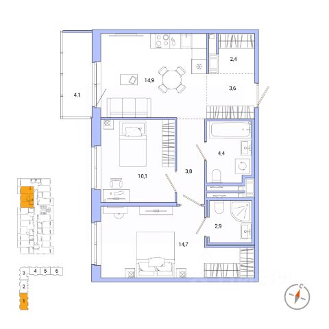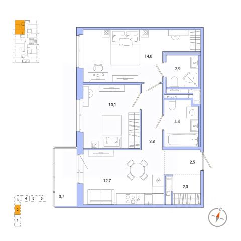 Вашему вниманию предлагается евродвухкомнатная квартира в доме бизнес класса ЖК Ultra City. Квартира расположена на 4 этаже, окна выходят во двор и на улицу. В квартире уникальная, функциональная планировка европейского стандарта, что делает ее более светлой и уютной. Общая площадь без учета лоджии 54.2 кв. м., кухня- гостиная правильной формы со встроенным гарнитуром и зоной для отдыха семьи и гостей 32 кв. м., спальня 12.4 кв. м., застекленная лоджия c системой хранения 3 кв. м., выход на лоджию из спальни. Санузел совмещенный. В квартире произведен качественный, дизайнерский ремонт, использовали современные европейские материалы класса люкс. Полы- паркетная доска Barlinek, плитка Porcelanosa. Всю технику и мебель заказывали под индивидуальный проект квартиры. Так же кухня укомплектована такими функциональными вещами как: винный шкаф, смеситель с функцией подачи чистой питьевой воды Omoikiri, фильтр обратного осмоса, мойка Franke, измельчитель отходов Bon Crusher, встроенная бытовая техника Neff. Сантехника Villeroy&Boch, смеситель и душ в санузле Kludi, мощный проточный водонагреватель. В гостиной зоне и прихожей организована грамотная система хранения вещей.Так же приятным дополнением для нового владельца будет кондиционер и smart TV. Квартира продается со всей мебелью и техникой. В жилом комплексе дежурит бдительная охрана, видеонаблюдение по периметру. Свой внутренний двор с детскими и спортивными площадками, множество организованных мест отдыха, свои шезлонги, также на территории расположены: баскетбольная площадка, скейт парк и столы для пинг-понга. Большое количество мест для парковки автомобиля, в том числе подземный паркинг. Отличная управляющая компания, следит за чистотой и порядком. В пешей доступности- гипермаркеты, магазины, аптеки, салоны красоты, ателье и другие направления удовлетворяющие потребности жителя комплекса. Развитая инфраструктура локации: детские сады, школы, свой детский сад на территории комплекса (рядом с парадной). Вблизи станция метро Комендантский проспект так же будет открытие ст. м. Шуваловский проспект. Быстрый выезд на главные дорожные артерии города: Парашутная ул., Шуваловский пр., КАД и ЗСД. Прямая продажа, документы готовы к сделке, без обременений, один взрослый собственник, полная сумма в договоре.