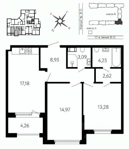 В шаговой доступности от жилого комплекса находятся станции метро (расстояние по прямой): "Горный институт" (1.0 км), "Василеостровская" (1.4 км), "Приморская" (1.5 км), также недалеко от этого корпуса находятся станции метро: "Спортивная", "Чкаловская".