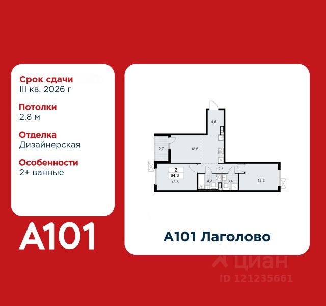 2-комнатная квартира площадью 48.60 в ЖК "А101 Лаголово" c лоджией на 5 этаже. Квартира с отделкой. Вид из окна во двор. В квартире 1 санузел. Высота потолков 2.95 м. Ключи в 2025 году. Предложения от застройщика на октябрь 2025: - Гибкая рассрочка 20 000 руб/мес. и первым взносом 10%. ОТДЕЛКА Для квартир с чистовой отделкой предлагается три варианта дизайна: Классика, Карелия светлая и Карелия темная. Варианты всех дизайнерских решений представлены на фотографиях. Подробности можно уточнить у менеджера. На все отделочные работы от застройщика предоставляется гарантия. ОСОБЕННОСТИ ПЛАНИРОВКИ Глубокая лоджия от 1,4м позволяет организовать отдельный кабинет, мастерскую или зимний сад с лаундж-зоной. ПАРАДНАЯ В каждой парадной предусмотрены места для хранения велосипедов и колясок, гостевой санузел, лапамойка (место для мытья домашних животных или колес велосипедов) и удобная зона ожидания для гостей. ДВОРЫ И ОКРУЖЕНИЕ Просторные дворы свободны от машин и закрыты от посторонних. Большую часть комплекса займут благоустроенные зелёные зоны, теневые сады и городские общественные пространства с развитой тротуарной сетью и велодорожками. Каждый дом оборудован системами видеонаблюдения и контроля доступа. "А101 Лаголово" - современный город у подножия знаменитых Дудерговских высот, в объятиях чистейших озёр и зелёных живописных массивов, наполненный всем необходимым для счастливой жизни. ИНФРАСТРУКТУРА. Мы занимаемся комплексным освоением территории. Наш приоритет - доступность всех сервисов для счастливой жизни. 1. Лаголово-город 15-ти минутной доступности. Вся необходимая инфраструктура: магазины, салоны красоты, образовательные учреждения, медицинские центры находятся в 15-ти минутах пешей прогулки от любой точки жилого комплекса. Это позволяет не тратить время на долгие перемещения. 2. Представьте идеальный город, где ребенок может спокойно играть, а пожилой человек наслаждаться заслуженным отдыхом. Жилая среда нашего комплекса может комфортно использоваться как 8-летним ребенком, так и 80-летним пожилым человеком. Дома, улицы, общественные пространства, тротуары спроектированы с заботой о людях разных возрастов. 3. Мы активно развиваем авторскую образовательную экосистему "Лёрнити". Она включает строительство 8 современных детских садов (2000 мест) и 3 школ (2945 учащихся). Мы учим родителей гармонично общаться с детьми, помогаем малышам подготовиться к школе, а подросткам - выбрать будущую профессию и развить таланты. Не хватает средств на покупку кладового помещения? Оформите ипотеку на квартиру и добавьте к ней часть стоимости кладовой. ЗАСТРОЙЩИК ГК "А101" - крупный инвестиционно-строительный холдинг, занимает 6-е место по объему строительства в России (по данным "Единого ресурса застройщиков" на 2023 год). НКР присвоило ГК "А101" кредитный рейтинг A+.ru, подтверждая его надежность и финансовую устойчивость для завершения строительства ЖК.