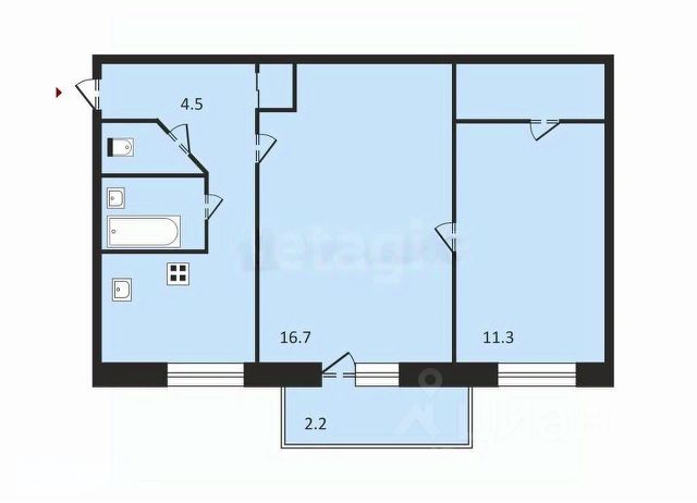 Сан. узел раздельный, установлена ванна. При желании его также можно объединить.