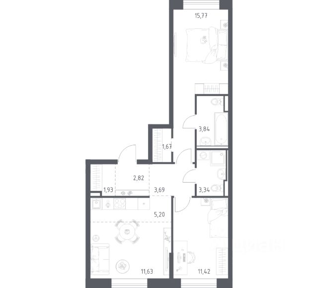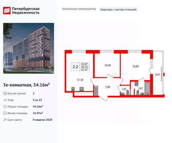 Продается уютная 2-комнатная квартира от застройщика в жилом комплексе "Город звезд" в новом городе на правом берегу Невы. До метро можно добраться на транспорте всего за 13 минут. Удобная, классическая, функциональная европланировка, большая кухня-гостиная 15.07 м², вместительная прихожая 6.29 м². Общая площадь квартиры - 49.13 м², жилая 23.06 м², высота потолка 2.77 м. Квартира продается с отделкой "NORD LINE WHITE". Что особенного в ЖК "Город звезд"? • Инновационный Лицей Setl с оригинальной архитектурной концепцией и уникальной образовательной средой • Невский лесопарк под окнами - всегда свежий воздух и полноценный отдых на природе • Четыре тематические площади отдыха с разнообразным благоустройством • Аллея Звёзд - променад протяженностью 5 км с ландшафтным озеленением, зонами отдыха и велодорожкой • Выход на набережную реки Утки, где можно порыбачить или взять напрокат лодку • Единая входная группа с ресепшен и подземный паркинг