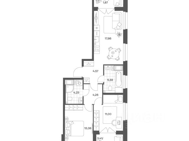 Продается уютная 2-комнатная квартира от застройщика в жилом комплексе "Город звезд" в новом городе на правом берегу Невы. До метро можно добраться на транспорте всего за 13 минут. Удобная, классическая, функциональная европланировка, большая кухня-гостиная 15.07 м², вместительная прихожая 6.29 м². Общая площадь квартиры - 49.13 м², жилая 23.06 м², высота потолка 2.77 м. Квартира продается с отделкой "NORD LINE WHITE". Что особенного в ЖК "Город звезд"? • Инновационный Лицей Setl с оригинальной архитектурной концепцией и уникальной образовательной средой • Невский лесопарк под окнами - всегда свежий воздух и полноценный отдых на природе • Четыре тематические площади отдыха с разнообразным благоустройством • Аллея Звёзд - променад протяженностью 5 км с ландшафтным озеленением, зонами отдыха и велодорожкой • Выход на набережную реки Утки, где можно порыбачить или взять напрокат лодку • Единая входная группа с ресепшен и подземный паркинг