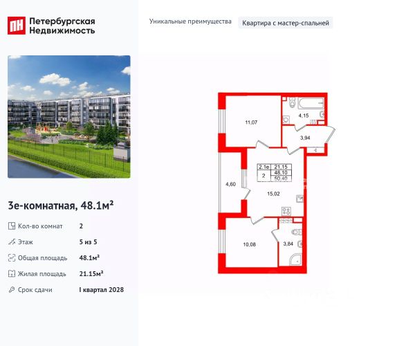 Продаётся 2-комн. квартира площадью 55,74 кв.м на 5 этаже 12 этажного дома (Корпус 4.1, Секция 1) проекта ПИК Таллинский парк. Светлый просторный подъезд на уровне земли, функциональная планировка, большие окна, без отделки. "Таллинский парк" - проект в Ленинградской области, в районе Новоселье. До станции метро "Проспект Ветеранов" - 15 минут на автомобиле, а до КАД можно доехать всего за 4 минуты. "Таллинский парк" включает 16 жилых домов, детский сад и школу. В проекте появится центральный сквер с обильным озеленением, а через весь квартал протянутся широкие пешеходные бульвары. В зелёных дворах-парках будут оборудованы современные детские и спортивные площадки, обустроены места для отдыха. На первых этажах разместятся магазины, кафе и другие сервисы. Проектом предусмотрены персональные кладовые помещения - это доступный, экономичный и удобный способ хранения сезонных и крупногабаритных вещей. Освободите свою квартиру для полноценной жизни. Район Новоселье активно развивается в городском формате: здесь уже работают детские сады, школа и магазины. Для любителей зимних видов спорта открыта круглосуточная ледовая арена Ice Rink. За покупками и развлечениями также можно быстро доехать: 10 минут - и вы в Аутлете Fashion House Таллинское, гипермаркетах Лента, Леруа Мерлен и Окей. В 10 минутах на автомобиле находится Финский залив, на берегу которого расположились объекты культурного наследия. Рядом - Константиновский парк с отреставрированным дворцом, а чуть дальше расположена усадьба Знаменка. В великолепном Петергофе вы будете уже через 20 минут. Артикул 1026135 (Застройщик ООО "СПЕЦИАЛИЗИРОВАННЫЙ ЗА СТРОЙЩИК "СТРОЙ-ЭКСПЕРТ ") [cn_sbp_1807052]