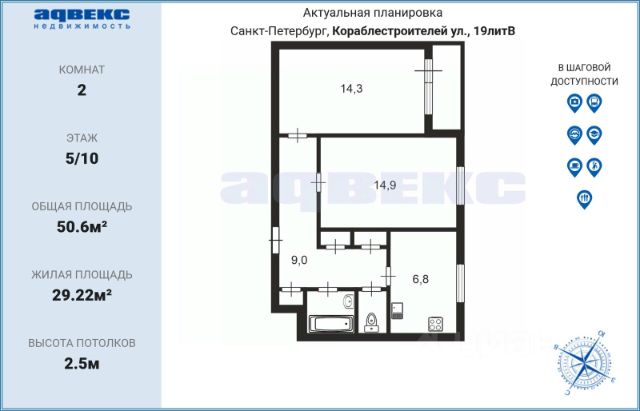 2-комн. квартира с предчистовой отделкой в ЖК "Новая Земля" на 5 этаже. Общая площадь: 62.09 кв.м., жилая: 21.18 кв.м., площадь просторной кухни-столовой: 16.16 кв.м. Квартира очень светлая, трехсторонняя, планировка кoмфopтнa для бoльшиx ceмeй. В квартире один балкон, один раздельный санузел. Наличие в квартире террасы открывает возможность для создания зон отдыха в кругу семьи и друзей. Высота потолков 2.85 м. Квартира находится в корпусе 1.7. Дом монолитный, одноподъездный, высотой 22 этажа. На этаже 9 квартир. В подъезде 2 пассажирских и 1 грузовой лифт. Окончание строительства - 4 квартал 2028 года. Оформление сделки по договору долевого участия. Новая Земля — проект LEGENDA в локации морской набережной Васильевского острова, где уже сегодня формируется многообещающее и перспективное место для жизни и инвестиций. Проект состоит из двух очередей, расположенных в непосредственной близости, но имеющих идеологически разный подход к проектированию и ассортиментному предложению. Первая очередь, где квартиры уже в продаже, наполнена компактными функциональными и эстетичными сьютами в комплектации TechnoBox, подходящими для активной аудитории, предпочитающей больше времени проводить в городе. Транспортная доступность обеспечена благодаря близости выезда на ЗСД, который позволяет быстро добраться как до центра города, так и до других районов Санкт-Петербурга. Архитектурная концепция проекта задает новый стандарт для этой локации. Дизайн фасадов, большие окна без импостов, современные инженерные решения — всё это создаёт атмосферу комфортного и эстетичного пространства, отвечающего самым высоким требованиям. В проекте представлена новая линейка планировочных решений, созданных по принципам отельного проектирования. Сьюты от LEGENDA — это уникальная работа с пространством, сочетающая сверхфункциональность и удобство, чистоту линий и стилистический минимализм. Планировочные решения в рамках первой очереди проекта будут поделены на несколько сегментов, отличающихся размерами, функциональной наполненностью и отвечающих потребностям различных жителей проекта.