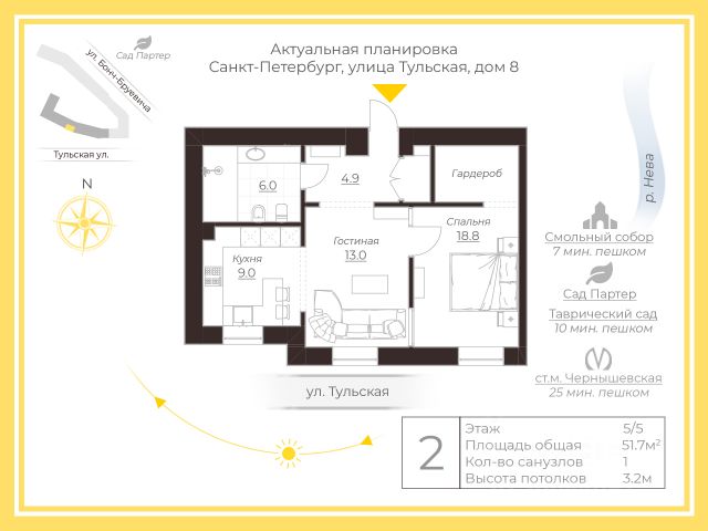 Квартира находится на последнем этаже дома, все окна обращены на южную сторону - на улицу Некрасова, из гостиной выход на красивый большой балкон, с которого открывается вид на церковь Иоанна Богослова и потрясающие виды на перспективу улицы. Семиметровый балкон, стоящий на эркере в окружении кариатид, практически как терраса, позволяет наслаждаться рассветами за завтраками или алыми закатами за ужинами в кругу семьи или друзей. На нем можно устроить самый настоящий сад, установив даже деревья.
