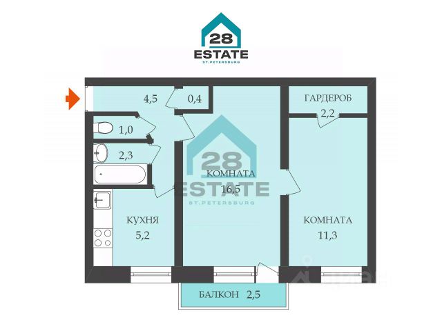 • ✅ Объект наибольшей площади: 63,6 м²
