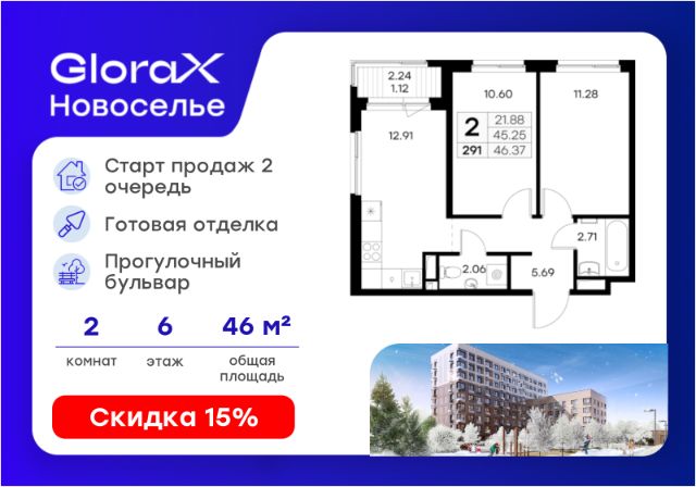 Продаётся 2-комн. квартира площадью 46,01 кв.м на 6 этаже 12 этажного дома (Корпус 4.2, Секция 1) проекта ПИК Таллинский парк. Светлый просторный подъезд на уровне земли, функциональная планировка, большие окна, без отделки. "Таллинский парк" - проект в Ленинградской области, в районе Новоселье. До станции метро "Проспект Ветеранов" - 15 минут на автомобиле, а до КАД можно доехать всего за 4 минуты. "Таллинский парк" включает 16 жилых домов, детский сад и школу. В проекте появится центральный сквер с обильным озеленением, а через весь квартал протянутся широкие пешеходные бульвары. В зелёных дворах-парках будут оборудованы современные детские и спортивные площадки, обустроены места для отдыха. На первых этажах разместятся магазины, кафе и другие сервисы. Проектом предусмотрены персональные кладовые помещения - это доступный, экономичный и удобный способ хранения сезонных и крупногабаритных вещей. Освободите свою квартиру для полноценной жизни. Район Новоселье активно развивается в городском формате: здесь уже работают детские сады, школа и магазины. Для любителей зимних видов спорта открыта круглосуточная ледовая арена Ice Rink. За покупками и развлечениями также можно быстро доехать: 10 минут - и вы в Аутлете Fashion House Таллинское, гипермаркетах Лента, Леруа Мерлен и Окей. В 10 минутах на автомобиле находится Финский залив, на берегу которого расположились объекты культурного наследия. Рядом - Константиновский парк с отреставрированным дворцом, а чуть дальше расположена усадьба Знаменка. В великолепном Петергофе вы будете уже через 20 минут. Артикул 1026323 (Застройщик ООО "СПЕЦИАЛИЗИРОВАННЫЙ ЗА СТРОЙЩИК "СТРОЙ-ЭКСПЕРТ ") [cn_sbp_1817858]