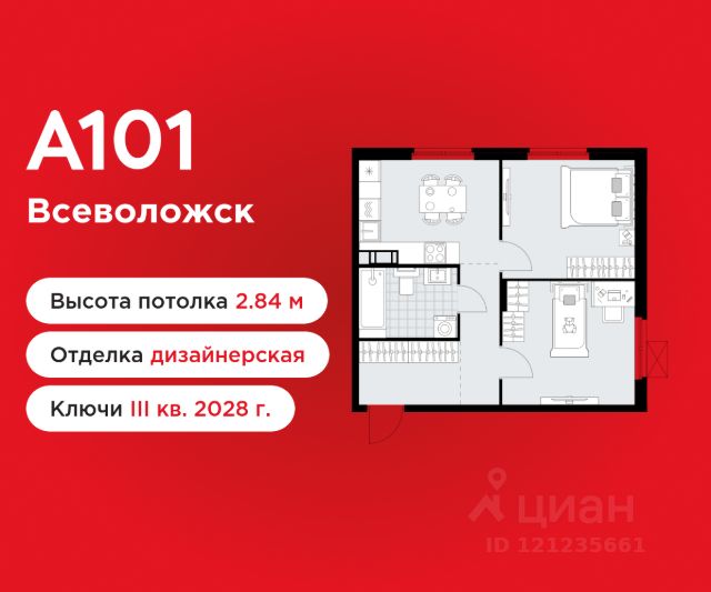 2-комнатная квартира площадью 55.60 в ЖК "А101 Всеволожск" на 6 этаже. Квартира без отделки. Вид из окна на улицу. В квартире 1 санузел. Высота потолков 2.84 м. ОТДЕЛКА Квартира передается без отделки. Благодаря тому, что в данном типе отделки стены не возводятся, вы сможете создать удобную планировку и самостоятельно организовать зонирование комнат. ПАРАДНАЯ. В каждой парадной предусмотрены места для хранения велосипедов и колясок, гостевой санузел и удобная зона ожидания для гостей. ДВОРЫ И ОКРУЖЕНИЕ. Просторные дворы свободны от машин и закрыты от посторонних. Предусмотрен подземный паркинг с возможностью спуститься из дома на -1 этаж и машиноместа с зарядными станциями для электромобилей. Большую часть комплекса займут благоустроенные зелёные зоны, теневые сады и городские общественные пространства с развитой тротуарной сетью и велодорожками. Каждый дом оборудован системами видеонаблюдения и контроля доступа. Не хватает средств на покупку кладового помещения? Оформите ипотеку на квартиру и добавьте к ней часть стоимости кладовой. ЗАСТРОЙЩИК ГК "А101" - крупный инвестиционно-строительный холдинг, занимает 6-е место по объему строительства в России (по данным "Единого ресурса застройщиков" на 2023 год). НКР присвоило ГК "А101" кредитный рейтинг A+.ru, подтверждая его надежность и финансовую устойчивость для завершения строительства ЖК.