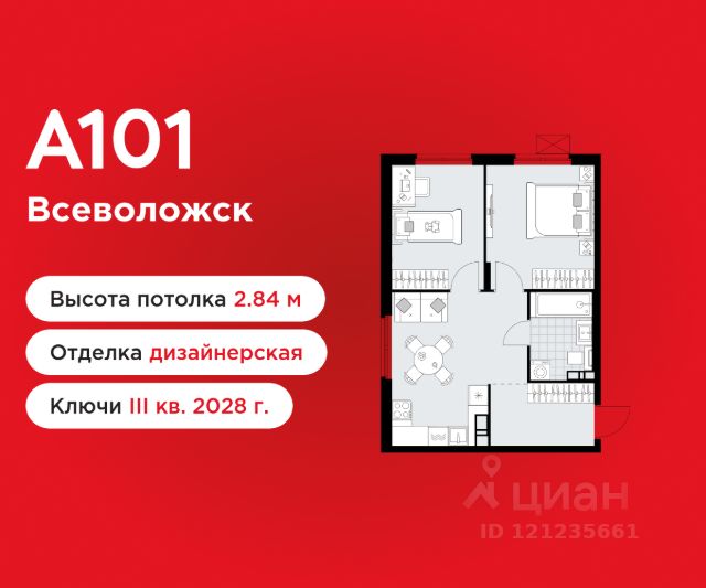 Видовая 2-комнатная квартира площадью 45.90 в ЖК "А101 Всеволожск" c лоджией на 6 этаже. Квартира white box. Вид из окна во двор. В квартире 1 санузел. Высота потолков 2.8 м. ОТДЕЛКА Квартира с предчистовой отделкой предполагает: качественную стяжку на полах под финишное покрытие, потолок с обеспыливающей грунтовкой белого цвета, ровные стены с покрытием штукатурка. Выполнены все работы по проведению электрики. На все отделочные работы от застройщика предоставляется гарантия. Если вы хотите дозаказать дизайнерскую отделку, обращайтесь к нашими специалистами. ОСОБЕННОСТИ ПЛАНИРОВКИ Глубокая лоджия от 1,4м позволяет организовать отдельный кабинет, мастерскую или зимний сад с лаундж-зоной. ПАРАДНАЯ В каждой парадной предусмотрены места для хранения велосипедов и колясок, гостевой санузел, лапамойка (место для мытья домашних животных или колес велосипедов) и удобная зона ожидания для гостей. ДВОРЫ И ОКРУЖЕНИЕ Просторные дворы свободны от машин и закрыты от посторонних. Большую часть комплекса займут благоустроенные зелёные зоны, теневые сады и городские общественные пространства с развитой тротуарной сетью и велодорожками. Каждый дом оборудован системами видеонаблюдения и контроля доступа. Не хватает средств на покупку кладового помещения? Оформите ипотеку на квартиру и добавьте к ней часть стоимости кладовой. ЗАСТРОЙЩИК ГК "А101" - крупный инвестиционно-строительный холдинг, занимает 6-е место по объему строительства в России (по данным "Единого ресурса застройщиков" на 2023 год). НКР присвоило ГК "А101" кредитный рейтинг A+.ru, подтверждая его надежность и финансовую устойчивость для завершения строительства ЖК.