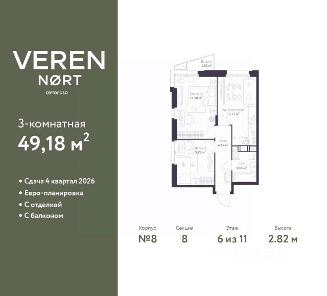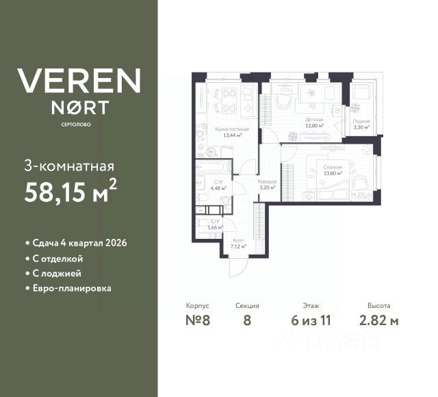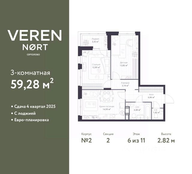 Продается 2-ух комнатная квартира в новом малоэтажном ЖК "Чистый ручей" в г.Сертолово. Наш небольшой, но уютный город находится на границе с г. Санкт-Петербург. КАД с городом соединяет хорошая 2-ух полосная дорога в обе стороны. Рядом находится Курортный район Санкт-Петербурга с хвойными лесами. В микрорайоне нет человейников. Есть большая бесплатная парковка для всего ЖК, а также достаточно много бесплатных парковочных мест непосредственно возле дома.