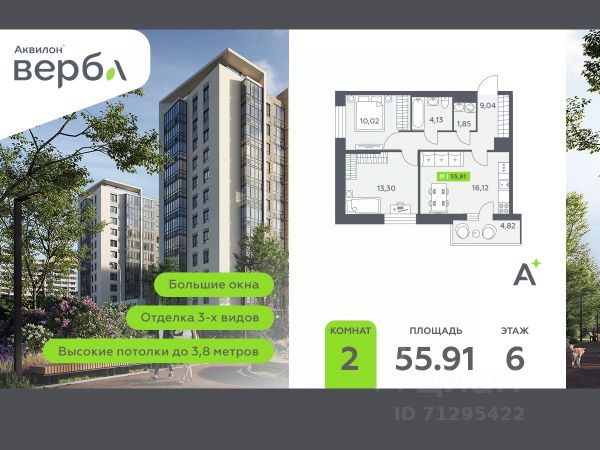В центре Петербурга на берегу реки Охты представлена 2-х комнатная квартира на 6 этаже общей площадью 52.76 кв.м. Дом бизнес-класса в креативном центре Петербурга на берегу реки Охты и 25 минутах пешком до Невского проспекта и 17 минутах пешком до м. Новочеркасская. Неповторимая и цельная атмосфера места. Река, которая обнимает дома, дышащие фасады из натуральных материалов, парк с родниками и травами во дворе и уникальная пластичная архитектура созвучны характеру современного города. АЛЬПЕН - дом твоего равновесия. - Приватные корпуса; - Выразительные фасадные решения; - Декоративная подсветка фасада; - Панорамные террасы с видом на реку Охта; - Квартиры с верандами формата high flat; - Витринное остекление. Внутренний двор, набережная и прилегающие территории образуют цельную эко среду, идеальную для комфортной, насыщенной новыми впечатлениями и эмоциями, динамичной жизни. Авторский двор-парк, переходящий в набережную - живописное природное окружение с тропами, променадом и увлекательными маршрутами для путешествий. Холлы и общественные пространства - продолжение парка. Авторское прочтение общественного пространства от московского дизайн бюро STUDIO 211 с первых минут позволяет ощутить ценность равновесия. АЛЬПЕН - для тех, кто ценит близость центра, уединенность и природную энергетику. - Семейная ипотека 4,3% на весь период кредитования. Ипотека предоставляется Сбербанком. Сумма кредита до 12 млн рублей, первый взнос от 20,1%. - Рассрочка на 2/6/12 месяцев.