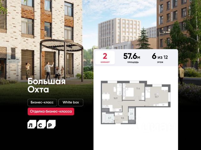 В центре Петербурга на берегу реки Охты представлена 2-х комнатная квартира на 6 этаже общей площадью 52.76 кв.м. Дом бизнес-класса в креативном центре Петербурга на берегу реки Охты и 25 минутах пешком до Невского проспекта и 17 минутах пешком до м. Новочеркасская. Неповторимая и цельная атмосфера места. Река, которая обнимает дома, дышащие фасады из натуральных материалов, парк с родниками и травами во дворе и уникальная пластичная архитектура созвучны характеру современного города. ALPEN - дом твоего равновесия. - Приватные корпуса; - Выразительные фасадные решения; - Декоративная подсветка фасада; - Панорамные террасы с видом на реку Охта; - Квартиры с верандами формата high flat; - Витринное остекление. Внутренний двор, набережная и прилегающие территории образуют цельную эко среду, идеальную для комфортной, насыщенной новыми впечатлениями и эмоциями, динамичной жизни. Авторский двор-парк, переходящий в набережную - живописное природное окружение с тропами, променадом и увлекательными маршрутами для путешествий. Холлы и общественные пространства - продолжение парка. Авторское прочтение общественного пространства от московского дизайн бюро STUDIO 211 с первых минут позволяет ощутить ценность равновесия. ALPEN - для тех, кто ценит близость центра, уединенность и природную энергетику. - Семейная ипотека 4,3% на весь период кредитования. Без удорожания стоимости квартиры. Ипотека предоставляется Сбербанком. Сумма кредита до 12 млн. рублей, первый взнос от 20,1%. - Рассрочка на 2/6/12 месяцев без удорожания стоимости.