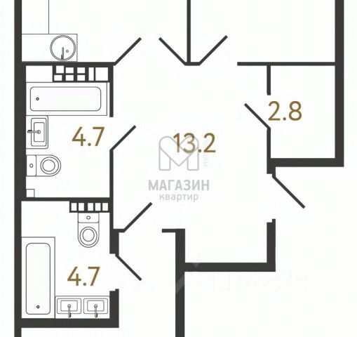 Квартира большой площади, все внутренние стены НЕ несущие, возможно сделать перепланировку под прекрасную 3-х комнатную квартиру, с тремя отдельными комнатами и кухня.