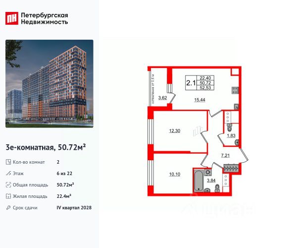 Продается уютная 2-комнатная квартира от застройщика в жилом комплексе "Город звезд" в новом городе на правом берегу Невы. До метро можно добраться на транспорте всего за 13 минут. Мастер-спальня с собственной ванной комнатой. Самое приватное пространство в вашей квартире. Уникальная, функциональная европланировка, большая кухня-гостиная 17.18 м², вместительная прихожая 5.47 м². Общая площадь квартиры - 52.62 м², жилая 23.83 м², высота потолка 2.77 м. Квартира продается с отделкой "NORD LINE SILVER". Что особенного в ЖК "Город звезд"? • Инновационный Лицей Setl с оригинальной архитектурной концепцией и уникальной образовательной средой • Невский лесопарк под окнами - всегда свежий воздух и полноценный отдых на природе • Четыре тематические площади отдыха с разнообразным благоустройством • Аллея Звёзд - променад протяженностью 5 км с ландшафтным озеленением, зонами отдыха и велодорожкой • Выход на набережную реки Утки, где можно порыбачить или взять напрокат лодку • Единая входная группа с ресепшен и подземный паркинг