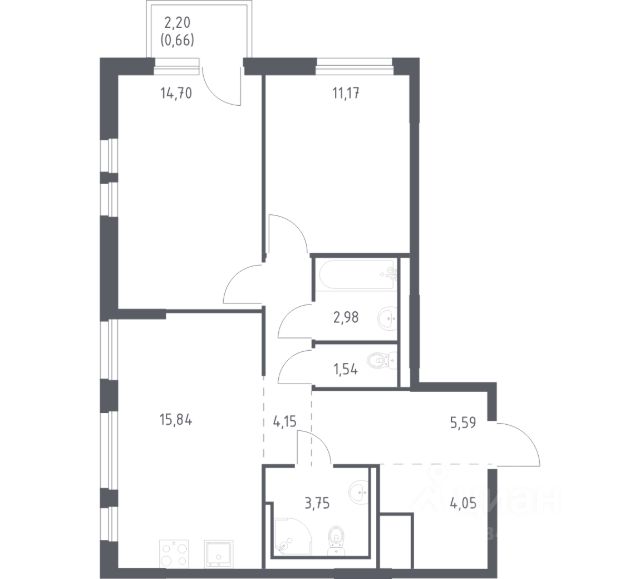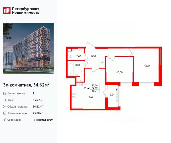 Строим кварталы для жизни с заботой о будущем. Предлагается 2-комнатная квартира комфорт-класса площадью 59,24 кв.м в корпусе 35.1 на 6-м этаже, в жилом комплексе "Новое Колпино".